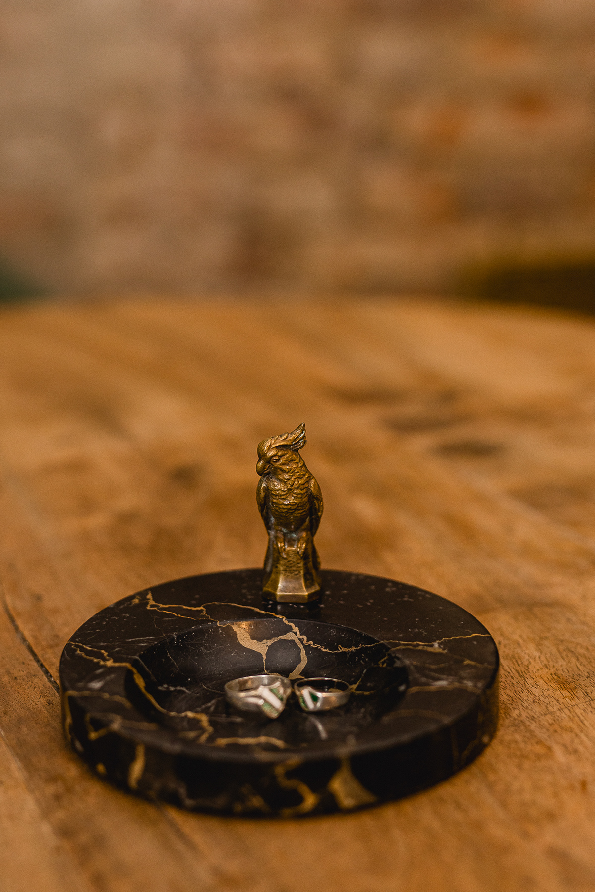 Marmor-Ringschale mit Bronze-Kakadu – Jugendstil Durchmesser: 14,5 cm | Höhe: 9 cm Diese edle Ringschale aus tiefschwarzem Marmor mit goldfarbenen Adern verbindet kunstvolle Handwerkskunst mit dem eleganten Charme des Jugendstils. Im Zentrum thront eine fein gearbeitete Kakadu-Figur aus Bronze, die dem Stück einen besonderen dekorativen Akzent verleiht. Die Schale eignet sich ideal zur stilvollen Aufbewahrung von Ringen, Schmuck oder kleinen Accessoires. Durch ihr Gewicht und die hochwertige Verarbeitung wirkt sie stabil, wertig und zugleich dekorativ – ein Blickfang auf jedem Sideboard, Schminktisch oder Nachttisch. Ob als Geschenk oder für das eigene Zuhause: Dieses einzigartige Deko-Objekt vereint Funktionalität und kunstvolles Design auf höchstem Niveau. Highlights: Elegante Ringschale aus echtem Marmor Bronze-Kakadu im Jugendstil als dekorativer Mittelpunkt Jede Marmorierung ein Unikat Perfekt für Schmuck & kleine Accessoires Stilvolles Wohnaccessoire für Vintage-, Art-Nouveau- oder klassische Interieurs