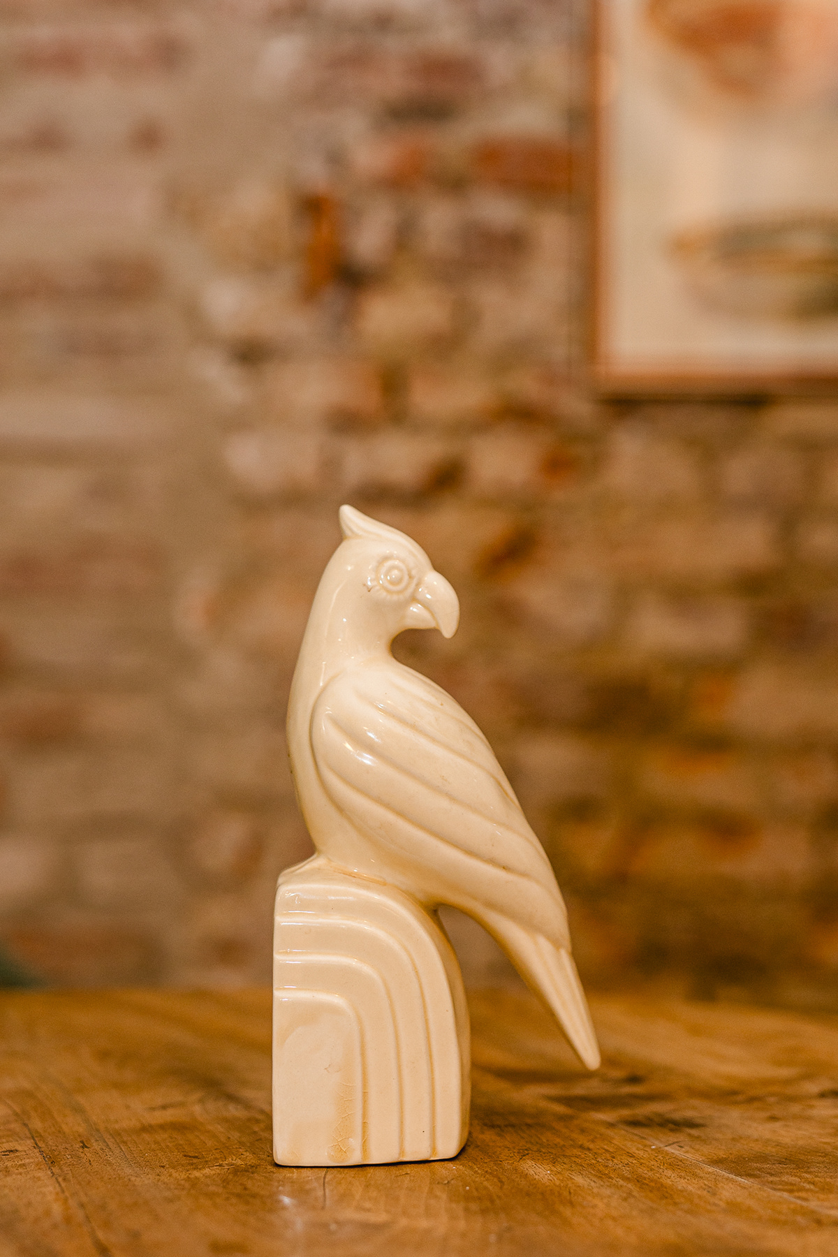Art-Deco Papagei Buchstütze – stilvolle Dekofigur aus Keramik, 25 cm Höhe Diese elegante Art-Deco Papagei Buchstütze überzeugt durch ihre klare Linienführung und den typischen geometrischen Stil dieser Epoche. Die Figur ist aus hell glasierter Keramik gefertigt und wirkt durch ihre geschwungenen Formen besonders dekorativ. Mit einer Höhe von 25 cm eignet sie sich ideal als Buchstütze, Skulptur oder wohnliches Statement-Piece. Ob im Wohnzimmer, Büro oder in einer Art-Deco-inspirierten Einrichtung – dieser Papagei setzt einen ausdrucksstarken Akzent und verbindet Funktionalität mit zeitloser Gestaltung. Besondere Merkmale: Art-Deco Design Höhe: 25 cm dekorative Buchstütze / Skulptur helle, glatte Keramikoberfläche ideal für Vintage-, Retro- und Art-Deco-Einrichtungen Ein charakterstarkes Dekoobjekt für Liebhaber von Art-Deco, Vintage-Accessoires und außergewöhnlicher Raumgestaltung.