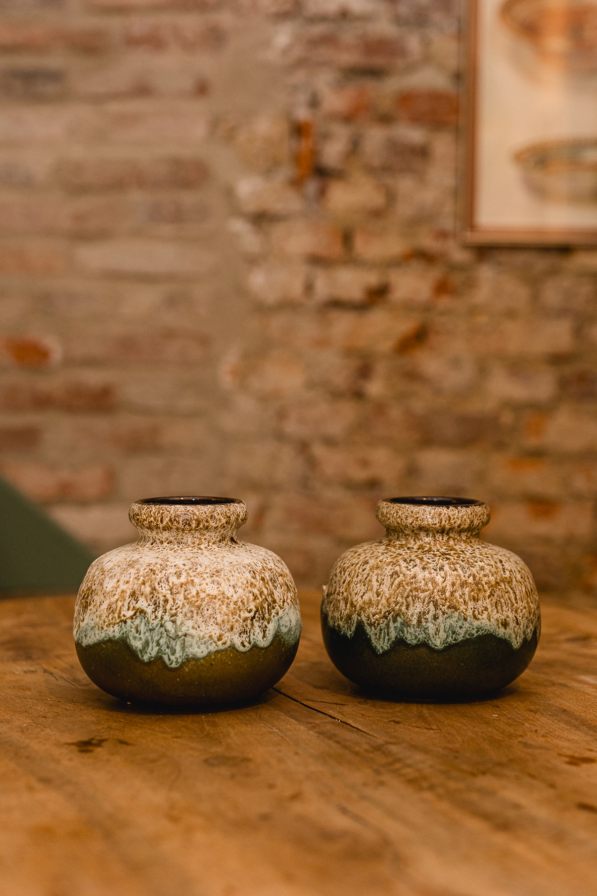 Höhe: 15 cm | 2 Stück verfügbar | Preis: 22 € pro Vase Diese charmante Scheurich Vase des Modells 284-15 besticht durch ihre markante Lava-Glasur in harmonischen Grün- und Beigetönen. Die charakteristische, lebendige Oberfläche verleiht jeder Vase eine individuelle Note und macht sie zu einem Blickfang in jedem Raum. Mit einer Höhe von 15 cm eignen sich die Vasen ideal für kleine Sträuße, einzelne Blüten oder als dekoratives Ensemble. Zwei Exemplare sind verfügbar, jedes für 22 €, perfekt für Doppelarrangements oder als Geschenkidee. Highlights: Original Scheurich Vase 284-15 Lava-Glasur in Grün-Beige Höhe: 15 cm Lebendige Oberflächenstruktur, jedes Stück ein Unikat Ideal für Blumen oder als dekoratives Set Ein stilvolles Keramikstück für Sammler und Liebhaber von Vintage-Design.