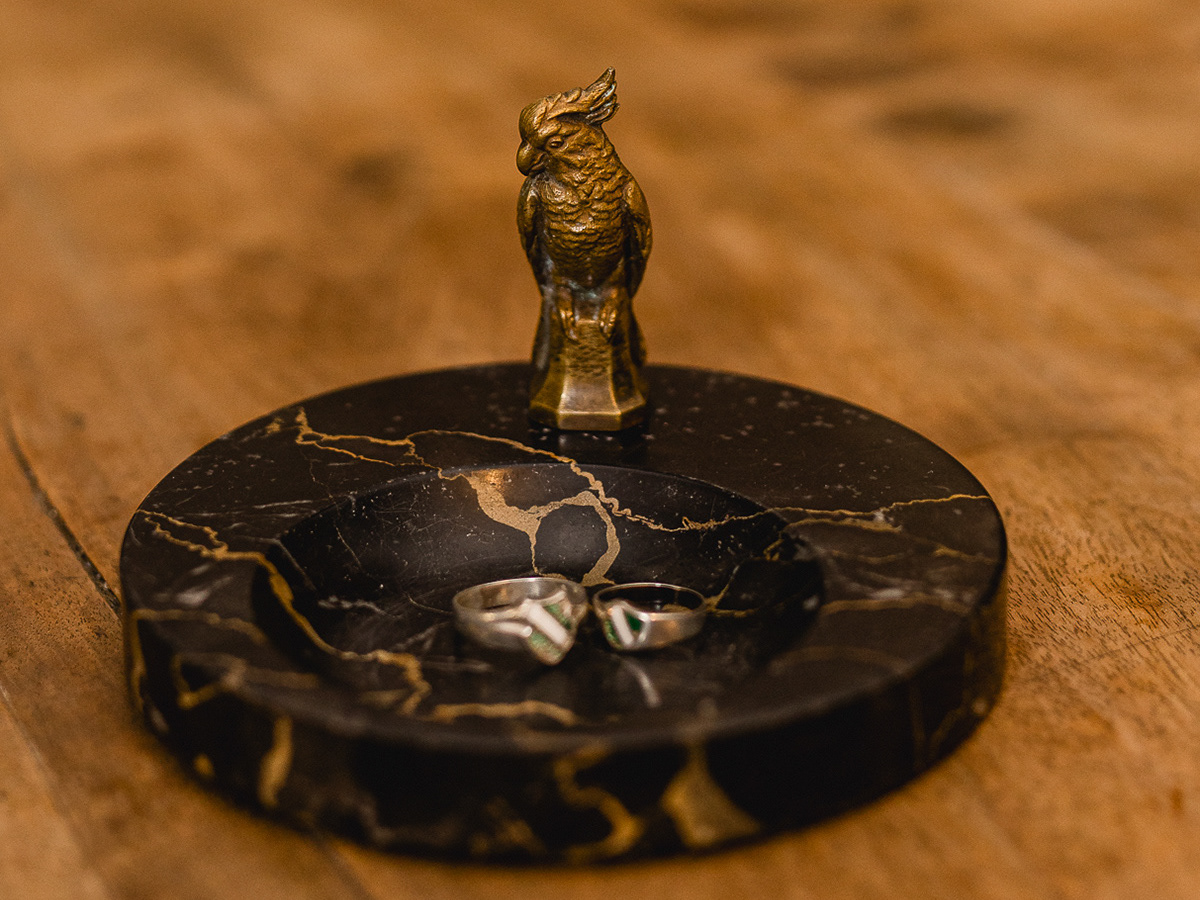 Marmor Ringschale mit Bronze Kakadu 86€